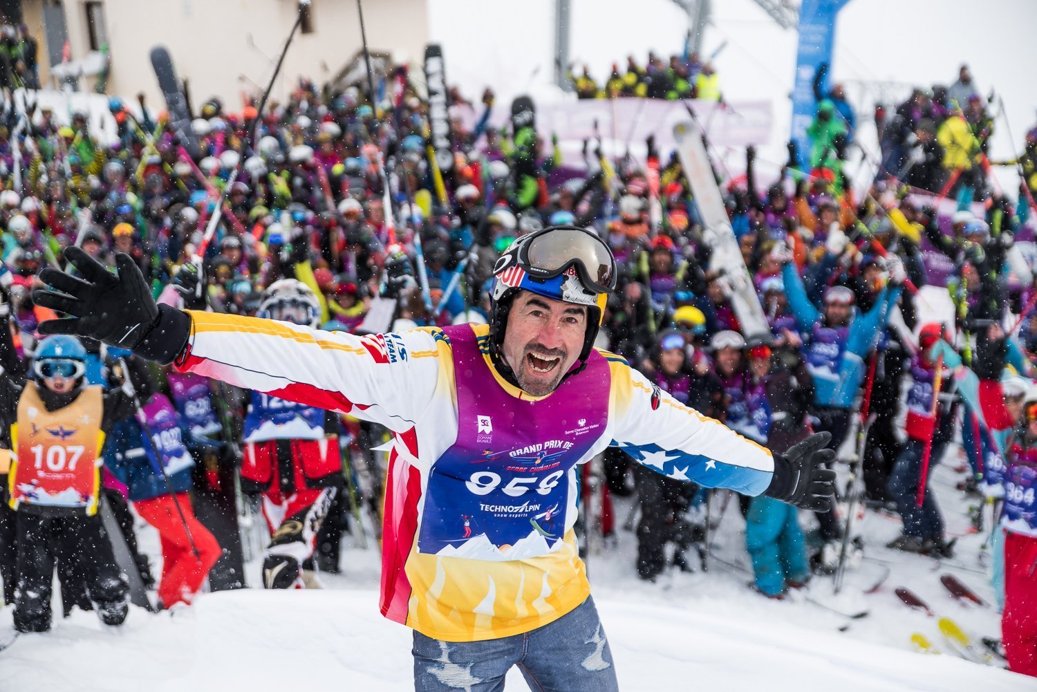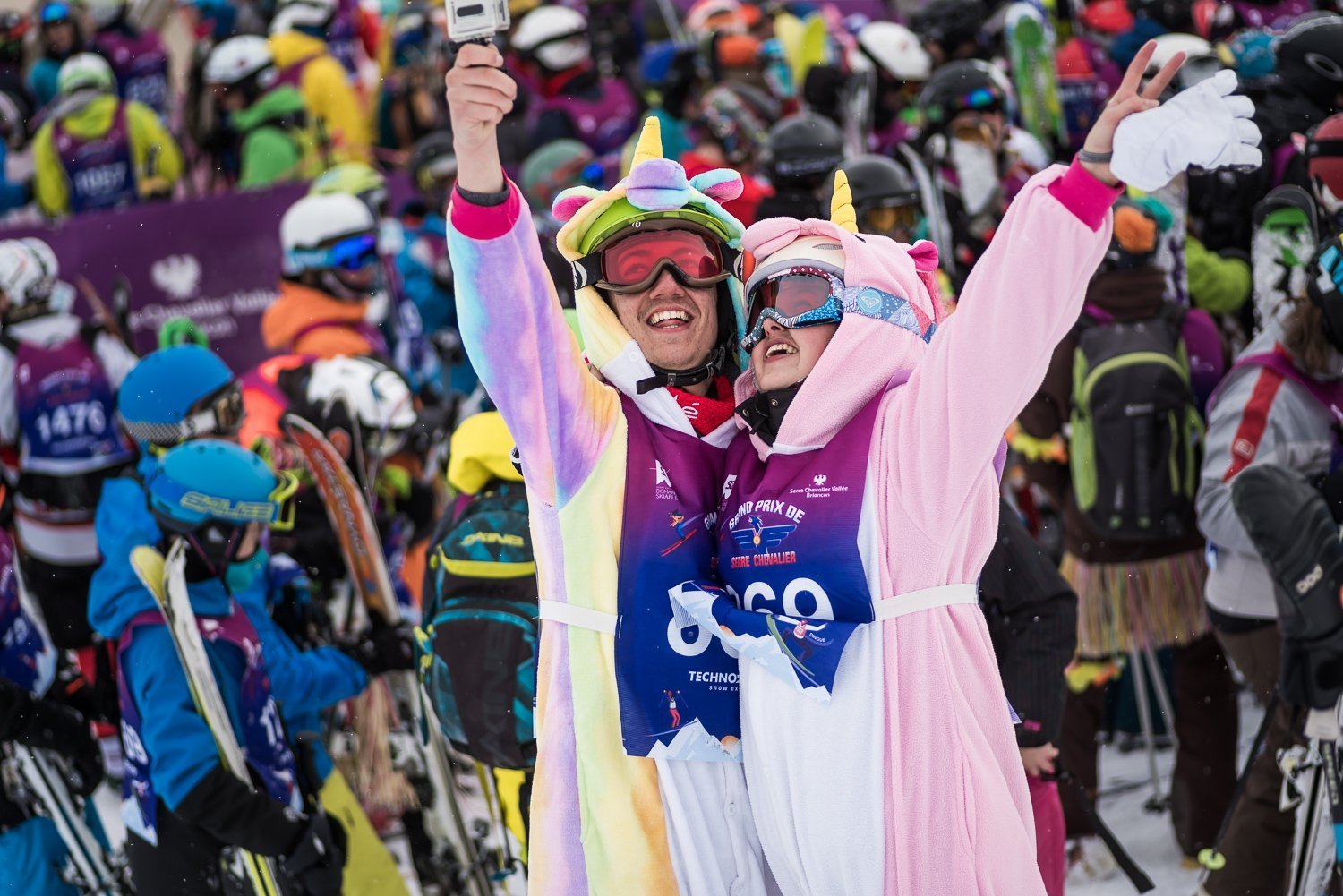 Ils étaient 1501 au départ de la course la plus folle du pays à Serre Chevalier ce samedi 17 mars 2018 : 765 "doux" et 736 "dingues", et plus de 100 "mini" ! Ils ont tous défié les différentes épreuves prévues par les organisateurs du Grand Prix, du « boarder king » au « very good tripes », qui ont fait voyager les coureurs de tous les niveaux sur l’ensemble du domaine skiable.Luc Alphand a pu lui-même se tester dans l’épreuve « Luc Aphond » ! Malgré des conditions météo pour le moins hivernales, l’ambiance était définitivement festive et bon enfant. Le Grand Prix de Serre Chevalier a confirmé son statut d’évènement incontournable de l’hiver, mais surtout du plus grand rassemblement de skieurs / snowboardeurs amateurs dans le monde.